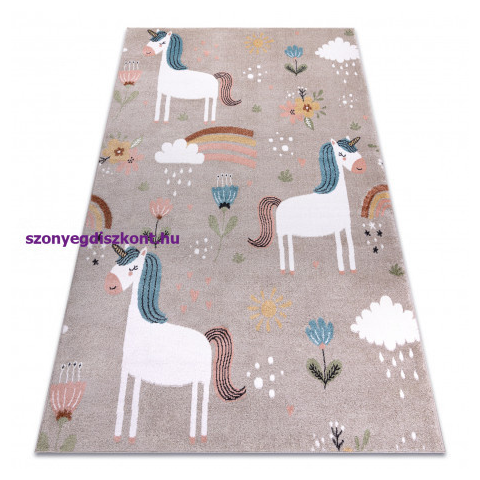 1 kép My carpet company kft Szőnyeg FUN Sweety gyerekeknek, egyszarvú, szivárvány bézs 80x150 cm