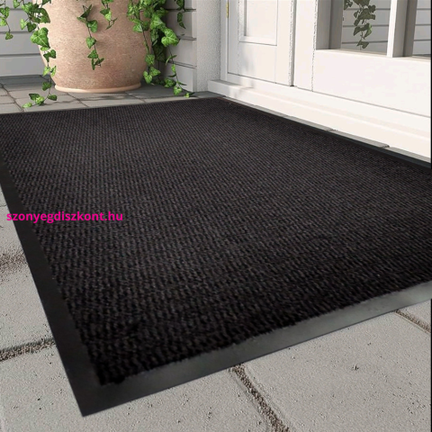 Lábtörlő fekete színben, 40 x 60cm méretben. A strapabíró anyagból készült darab kellemes járófelületet biztosít. Tökéletes választás bejárati ajtók elé, hogy felfogja a koszt és a nedvességet. A termék rendszeres porszívózással vagy nedves ruhával egysz