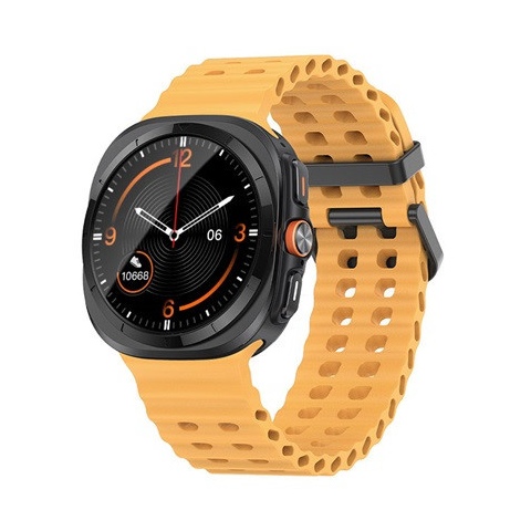 Ez a Samsung Galaxy Watch Ultra szíj egy jó minőségű, szilikon anyagból készült kiegészítő, amely tökéletesen illeszkedik sportoláshoz és mindennapi viselethez egyaránt. Az mangó színű szíj modern és dinamikus megjelenést kölcsönöz az órának, miközben a