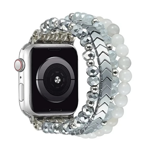 Egy igazi 2 az 1-ben óraszíj. A gyöngyök nem mindennapi kinézetet biztosítanak az óraszíjnak és vele együtt az Apple Watch-odnak is. A rugalmas kialakításnak köszönhetően nagyon könnyen és gyorsan feltehető a csuklóra.