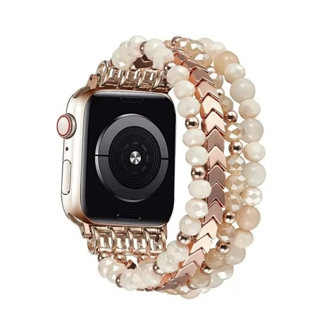 Egy igazi 2 az 1-ben óraszíj. A gyöngyök nem mindennapi kinézetet biztosítanak az óraszíjnak és vele együtt az Apple Watch-odnak is. A rugalmas kialakításnak köszönhetően nagyon könnyen és gyorsan feltehető a csuklóra.