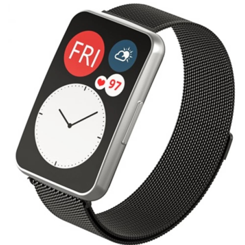 Könnyed és elegáns ezüst színű milánói fém szíj Huawei Watch Fit okoskarkötőhöz. A szíj 145-195mm csuklókerületre megfelelő. A termék nem tartalmazza az okkosórát!