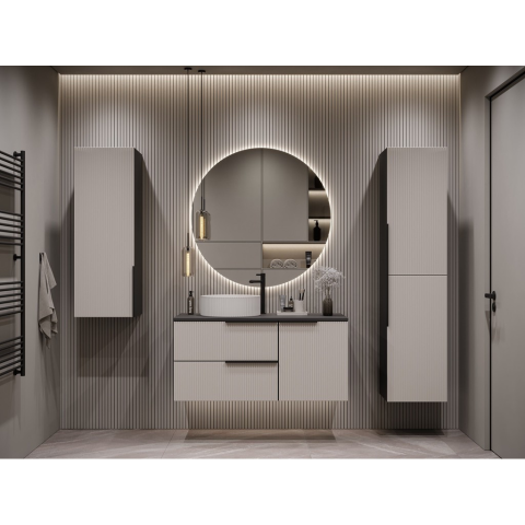 Mylife klerk 100 3 fürdőszoba bútor, antracit/kasmír A munkalap védve van a víz felszívódásától! ! ! ELŐRENDELHETŐ!!! (házhozszállítás rendeléstől számítva 12-14 munkanap) Műszaki adatok Mosdó szekrény: - Szélesség: 100 cm - Magasság: 48 cm -