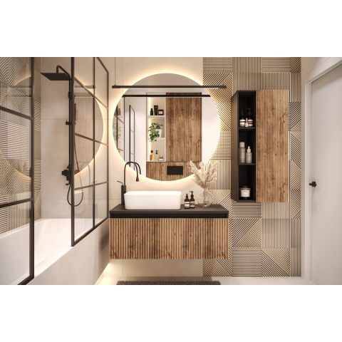 Mylife Tawo 1 Fürdőszoba Bútor: Modern, Matt Fekete Fürdőszobabútor 🛁 Stílusos és praktikus fürdőszobabútor, amely elegáns matt fekete kivitelben készült. A Wotan tölgy fahatású elemek kellemes kontrasztot biztosítanak, modern és meleg hangulatot ter...