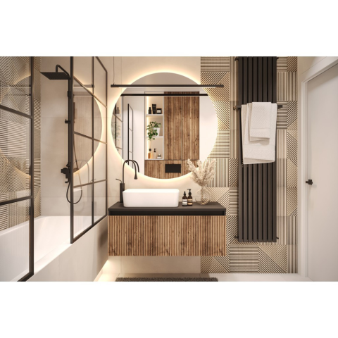 Mylife Tawo fürdőszoba szekrény, matt fekete A munkalap védve van a víz felszívódásától! ! ! ELŐRENDELHETŐ!!! (házhozszállítás rendeléstől számítva 12-14 munkanap) Műszaki adatok: - Szélesség (100cm) - Magasság: (40cm) - Mélység: (45cm) - T