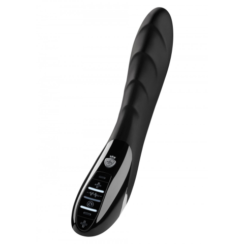 Mystim Sizzling Simon -elektro-stimulációs vibrátor.Egy vibrátor, amiben egyszerre van jelen az elektromos stimuláció és a rezgés, mindez egyszerű, letisztult formával, rendkívül magas minőséggel és újratölthető akkumulátorral egyesülve.Tulajdonságok:-két erős motor: 1 a fejben, egy pedig a szárban-külön vezérelhető elektromos impulzusok-külön vezérelhető vibráció-stimuláló, redős felszíni kialakítás-akár egyidejű elektro- és vibro stimuláció-8 rezgé