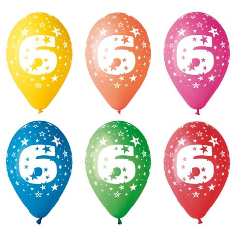 N/A Léggömb 26cm - 6-os szám (5db) (11-PRINT6) party kellék 1 kép