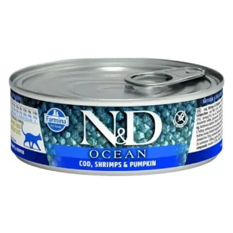 Teljes N&D Cat Ocean konzerv tőkehal & garnélarák sütőtökkel 70 g termékleírás