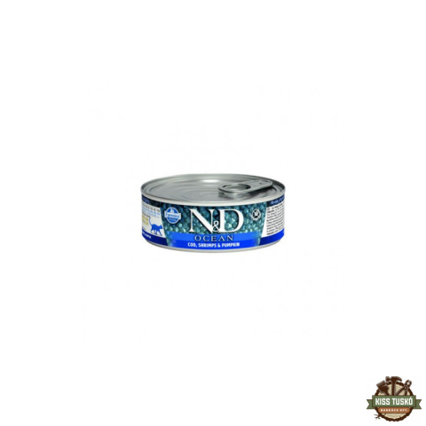 N&D Cat Ocean konzerv tőkehal & garnélarák sütőtökkel 70g macskaeledel termékleírás