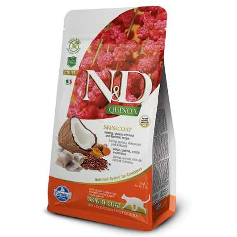 N&D Cat Quinoa Skin & Coat Hering 1,5kg macskaeledel termékleírás