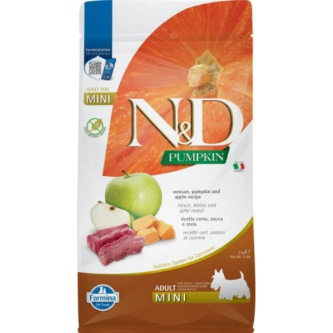 N&D Pumpkin Dog szarvas & sütőtök, alma adult mini 2 kg kutyaeledel termékleírás
