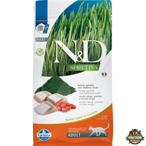N&D Spirulina Cat Adult hering 1,5kg macskaeledel termékleírás