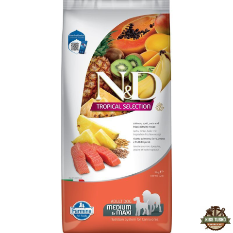 Teljes N&D Tropical Selection Dog Salmon Adult medium/maxi 10kg termékleírás