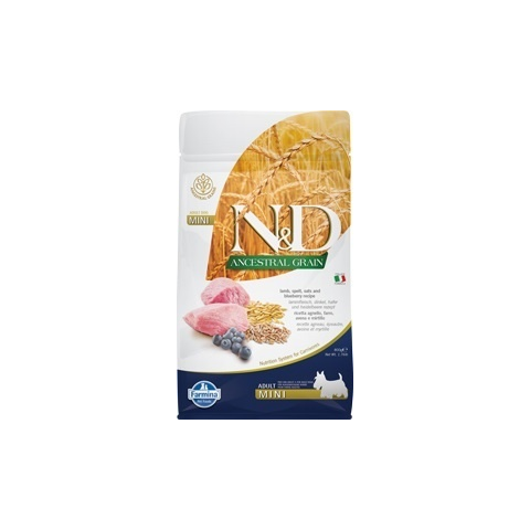 N&D Dog Ancestral Grain Adult Mini Bárány, Tönköly, Zab&Áfonya 800g kutyaeledel termékleírás