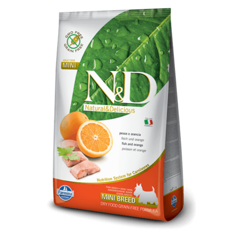 Teljes N&D Grain Free Adult Mini Hal & Narancs 800g termékleírás