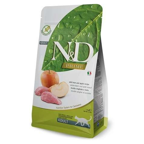 Az N&D Cat Prime Adult Boar & Apple (Grain Free) macskatáp, vadisznóhússal és almával készül felnőtt macskáknak. Teljes értékű, gabona- és gluténmentes száraztáp.