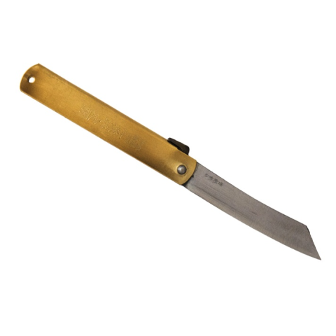 Nagao Higonokami - DB120Közepes méretű tradícionális japán zsebkés, amely annak ellenére, hogy nem rendelkezik zárral, több dologra képes, mint amit el tudunk képzelni. Kézi megmunkálással készül, markolata hajtogatott réz, melyet kanjis-sal (japán ír
