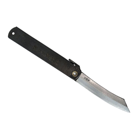 Nagao Higonokami - DS120Közepes méretű tradícionális japán zsebkés, amely annak ellenére, hogy nem rendelkezik zárral, több dologra képes, mint amit el tudunk képzelni. Kézi megmunkálással készül, markolata hajtogatott acél, melyet kanjis-sal (japán í