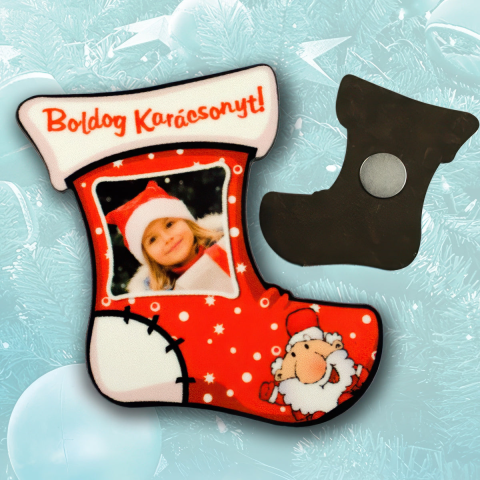 🎄 Csizma alakú fényképes karácsonyi fa hűtőmágnes Tedd ünnepivé a hűtődet ezzel a különleges, csizma alakú fényképes karácsonyi hűtőmágnessel! 🎅 Egy apró, mégis szívhez szóló ajándék , amely garantáltan mosolyt csal a családtagok arcára minden egyes ajtónyitásnál. Ez az egyedi karácsonyi hűtőmágnes tökéletes választás szülőknek, nagyszülőknek, gyerekeknek vagy barátoknak , hiszen nemcsak dekoratív, hanem személyre szabható emléktárgy