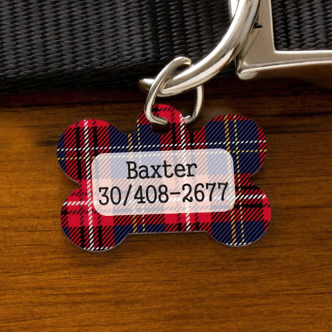 🐾 Csont alakú fém kutyabiléta – piros kockás design Egy kis elegancia a négylábú barátjának! Ez a piros-fekete kockás mintájú, csont alakú fém kutyabiléta nemcsak biztonságos, hanem stílusos kiegészítő is kedvencének. A bilétán feltüntetett név és telefonszám segíti, hogy kutyusa akkor is hazataláljon, ha esetleg elkóborolna. ✨ Termékadatok: Anyaga: fém Méret: 3,8 × 2,5 cm Szín/minta: piros-fekete kockás (tartan stílus) Hátoldal: szü