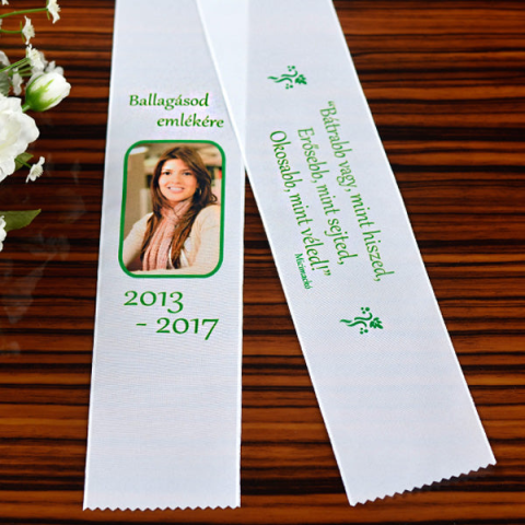 Szeretne valami igazán egyedi szalagot a csokorra? Egy fényképes ballagási szalag kitűnő választás és örök emlék lehet minden diák számára. A szalag egyik oldalát a diák fényképe díszítheti, a másik oldalára pedig az Ön által választott idézet kerülhet. A fényképes ballagási szalag cikk-cakkban végződik, szélessége 7cm, hossza 150cm.