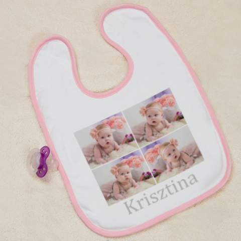 Egyedi 4 fényképes bébi előke rózsaszín szegéllyel – személyre szabott ajándék kislányoknak 💖 Ha igazán különleges és emlékezetes ajándékot keresel egy kisbaba számára, ez a 4 fényképpel és keresztnévvel díszített egyedi előke tökéletes választás! Legyen szó keresztelőről, születésnapról, névnapról vagy babalátogatóról , egy személyre szabott partedli minden szülőt meghat és garantáltan nagy örömet okoz. Az előkére összesen 4 db sajá