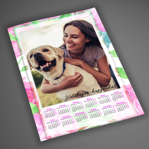 🌸 2026-os fényképes A4-es falinaptár Friss, tavaszias hangulat, szívmelengető emlékek és egyedi megjelenés – ez a virágmintás fényképes falinaptár minden napra mosolyt csal az arcodra! 🌷 A középen elhelyezett fotó helyére saját képet tölthetsz fel , így a naptár teljesen személyre szabható — legyen szó családról, párodról vagy akár kedvenc kiskedvencedről. 🐾 A finom akvarell hatású virágkeret és a kézzel írott stílusú „Kétezer-huszonh