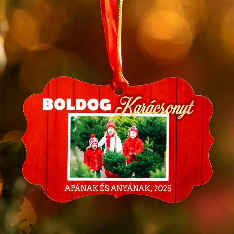 🎄 Fényképes fém karácsonyfadísz „Boldog Karácsonyt” felirattal – személyre szabható ajándék Különleges és személyes karácsonyi meglepetést keres? Ez az egyedi fényképes fém karácsonyfadísz tökéletes választás! A grafika a klasszikus „Boldog Karácsonyt” feliratot tartalmazza, míg a fotó alatti szöveg szabadon megadható , így teljesen egyedi ajándék készíthető belőle szülőknek, nagyszülőknek vagy barátoknak. Termékjellemzők: Anyaga