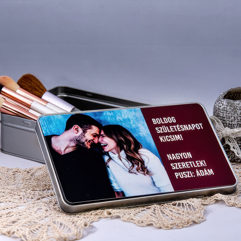 ❤️ Egyedi fényképes fémdoboz felirattal – Romantikus ajándék saját fotóval Mondd el, mennyire szereted – egy különleges dobozban 💝 Ez az egyedi fényképes fémdoboz felirattal tökéletes meglepetés a párodnak születésnapra, évfordulóra vagy Valentin-napra. A doboz tetejére saját fotó és személyes üzenet kerül, így igazán szívhez szóló ajándékot adhatsz. Használható ajándékcsomagolásként, ékszeres dobozként, emlékek tárolására vagy bonbono