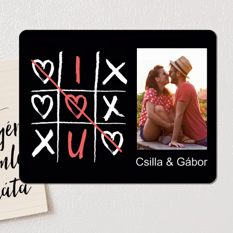 ❤️ „I ♥ U” – Egyedi fényképes fa hűtőmágnes szerelmeseknek Szeretnéd egy igazán különleges, mégis játékos ajándékkal meglepni a párod? Ez az „ötödölő” mintás fényképes fa hűtőmágnes tökéletes választás, ha szeretnéd kimutatni a szereteted egy vidám, kreatív formában. A fekete háttér előtt jól érvényesül a rajzolt „I ♥ U” grafika , mellette pedig egy közös fotó teszi teljessé a személyes üzenetet. Legyen szó Valentin-napról
