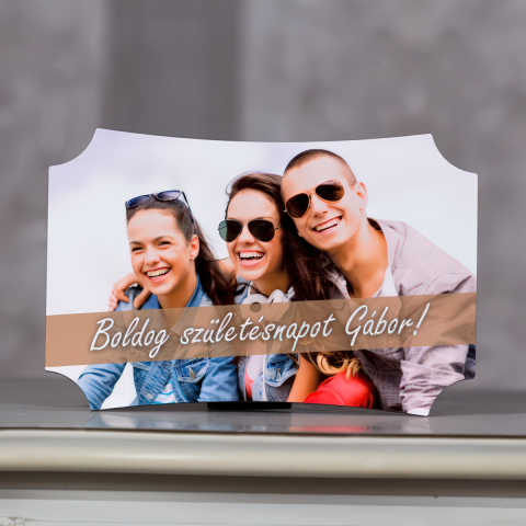 🎉 Egyedi fényképes fotópanel Ajándékozzon valódi élményt és örök emléket! Ez az egyedi fényképes fa fotópanel tökéletes választás születésnapra vagy névnapra, hogy megőrizze a legvidámabb pillanatokat. A modern, ívelt forma és a fényes felület elegáns megjelenést kölcsönöz, így a panel dísze lehet bármely polcnak vagy komódnak. 🎁 Kiváló ajándék barátoknak, családtagoknak vagy kollégáknak – egy személyes meglepetés, amely mindig mosolyt