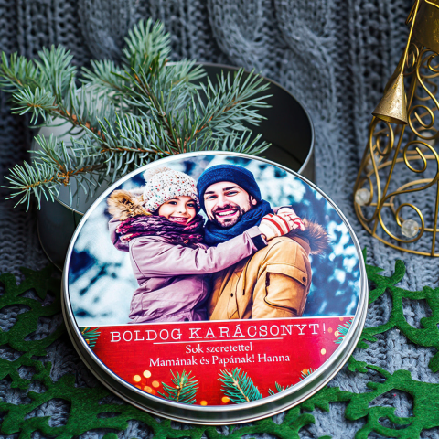 🎁 Fényképes karácsonyi fémdoboz – Egyedi ajándék saját fotóval Előfordult már, hogy valami igazán személyes karácsonyi ajándékot kerestél? Ezzel az egyedi fényképes karácsonyi fémdobozzal 🎄 nemcsak egy dobozt adsz, hanem egy maradandó emléket is. A tetőn elhelyezett fénykép és személyes üzenet teljesen testre szabható – választhatsz családi, páros vagy gyermekfotót, és kiegészítheted megható felirattal, mint például: „Sok szeretettel Mamána