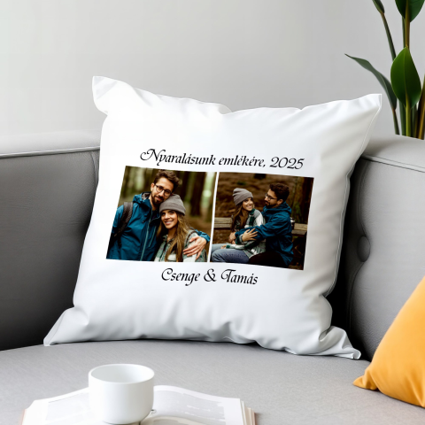 🖤 Fényképes párna 2 képpel – egyedi ajándék, örök emlék Ez a különleges fényképes párna tökéletes ajándék lehet bárkinek, aki szereti a meghitt, személyes meglepetéseket. Legyen szó nyaralásról, évfordulóról vagy családi pillanatokról, a párnán elhelyezett két fotó és a személyes felirat igazán egyedivé teszi ezt a melegséget árasztó ajándékot. 🎁 Tökéletes választás évfordulóra, születésnapra, Valentin-napra vagy Karácsonyra. Term
