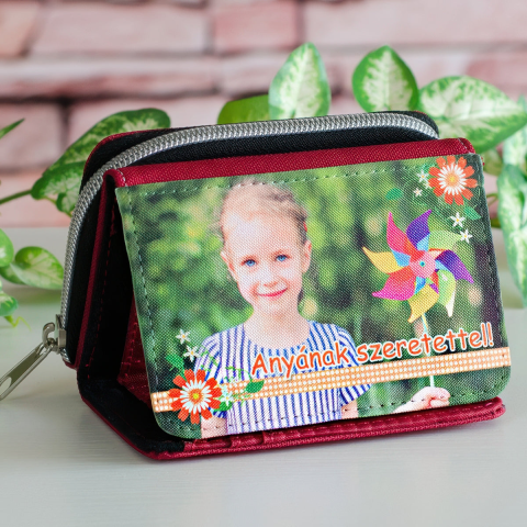 Egyedi fényképes pénztárca piros színben – személyes és praktikus ajándék a mindennapokra Ha igazán különleges, mégis praktikus ajándékot keresel, ez a fényképes pénztárca piros szegéllyel tökéletes választás! A pénztárca mindennapi használati tárgy, így egy személyre szabott verzió igazán szívhez szóló meglepetés lehet anyák napjára, születésnapra, karácsonyra vagy akár csak úgy, szeretetből . A pénztárca előlapjára egy kedvenc fotó és egy