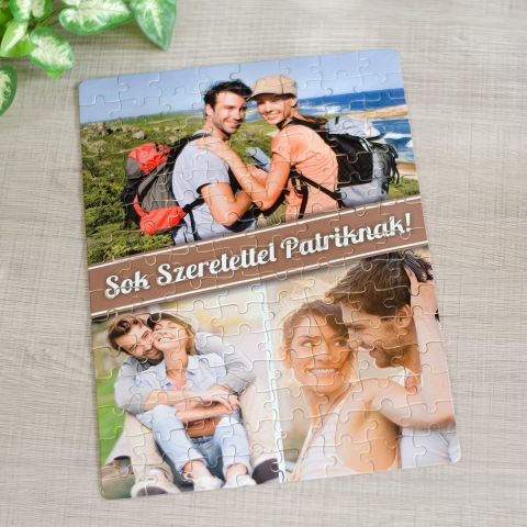 🧩 Egyedi fényképes kirakó 3 képpel (A4 – 96 db) Őrizd meg a legszebb közös pillanatokat egy kreatív és személyes formában! Ez az egyedi fényképes kirakó egyszerre három kedvenc fotóddal készül, így igazán meghitt és egyedi ajándékká válik. Legyen szó családi emlékekről, baráti kalandokról vagy romantikus pillanatokról, a puzzle kirakása közben újra átélhetitek ezeket a történeteket. Az egyedi puzzle még különlegesebbé tehető egy rövid, egysor