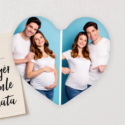 💞 Szív alakú fényképes hűtőmágnes – két fotóval Őrizd meg a legszebb pillanatokat duplán ezzel az egyedi, kétképes szív alakú hűtőmágnessel ! 💖 Legyen szó családi emlékekről, romantikus pillanatokról, várandósságról, nyaralásról vagy baráti élményekről , ez a különleges hűtőmágnes minden alkalomra tökéletes választás. A fotók közvetlenül a fényes műanyag felületre kerülnek nyomtatásra , így élénk színeket és időtálló minőséget