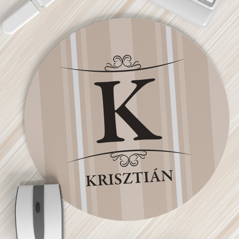 🖱️ Kör alakú egyedi neves egérpad – elegáns és praktikus ajándék Tedd különlegessé a munkahelyi vagy otthoni asztalod ezzel az elegáns, csíkos mintájú kör alakú egérpaddal , amelyet egy választott név és kezdőbetű tesz igazán személyessé. Tökéletes kombinációja az eleganciának és funkcionalitásnak , így remek választás diákoknak, tanároknak, kollégáknak vagy akár ajándékként is. Termékjellemzők: Kör alakú, egyedi névvel és kezdőbet