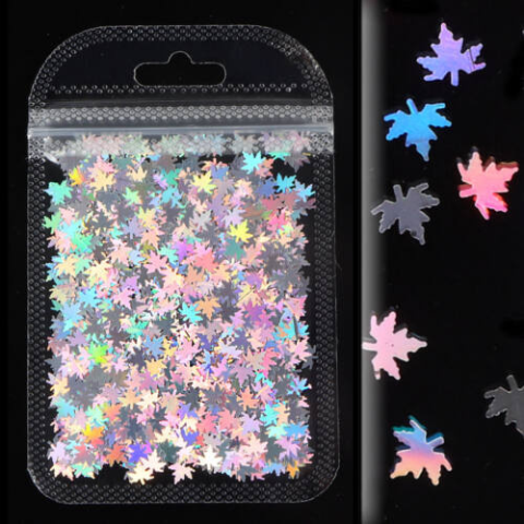 Hologrammos falevél formájú körömdíszítő