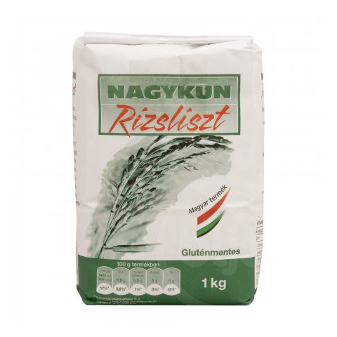 Nagykun rizsliszt 1000 g Összetevő: Hántolt rizs 100% Hántolt rizsből készült porózus, selymes, finom szemcséjű gluténmentes liszt. Magában vagy egyéb lisztekkel keverve készíthető belőle ízletes és egészséges étel. Kiválóan alkalmas tészták, d