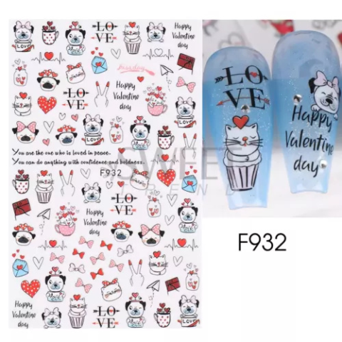 1 kép Nail-Art Körömmatrica - F932 Love Valentin Cica