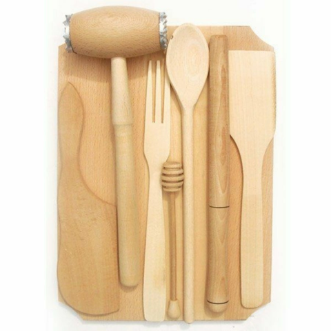 1 kép NapiKütyü Fa konyhai eszközök szett, vágódeszkával