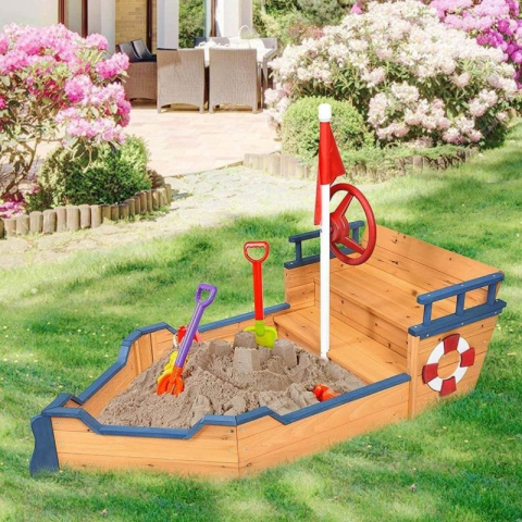A kalózhajó külsejű homokozó új szintre emeli a kerti játékélményt a gyerekek számára.