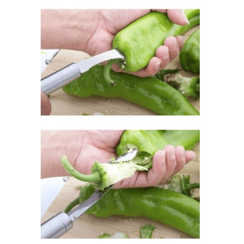 Szereted a töltött paprikát, de ki nem állhatod az elkészítésével járó herce-hurcát? Képzeld van egy speciálisan erre a műveletre kifejlesztett kés, amivel könnyedén eltávolíthatod a paprika belsejét. Így sokkal pontosabban és gy
