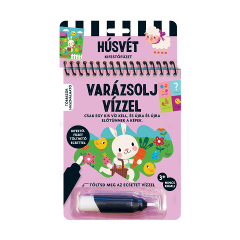 Töltsd meg vízzel a tollat, és hívd elő a képek elemeit, így lesznek teljesek az oldalak, és megválaszolhatod a füzet kérdéseit. Ha a foltok megszáradnak, újra fehérek lesznek, és kezdheted elölről, amikor csak kedved tartja.