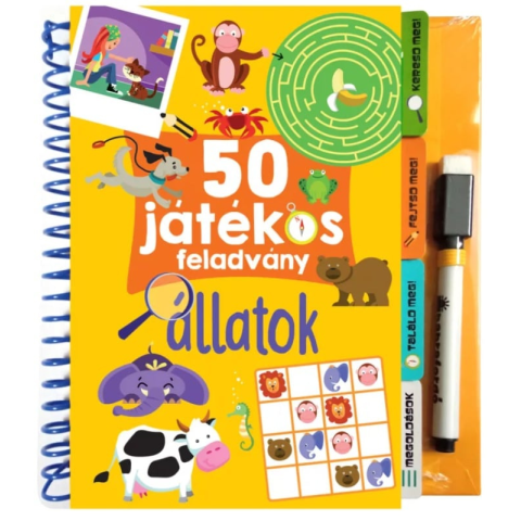 A 50 játékos feladvány – Állatok azoknak a gyerekeknek szól, akik rajonganak az állatvilágért, és szívesen próbálják ki magukat különféle, rövid idő alatt megoldható kihívásokban. A kötetben 50 változatos rejtvény vár: köztük olyan típusok, amelyek a szók