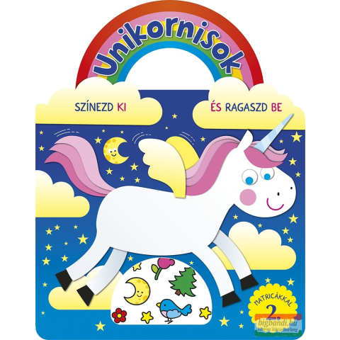 Könnyen magaddal is viheted ezt a kedves matricásfüzetet, aminek táska formája van. A csodás, színes oldalakon már csak az unikornisokat kell kiszínezni - a minta alapján, vagy akár magadtól is megpróbálhatod. És a móka nem ér véget: a füzetben sok-sok ma