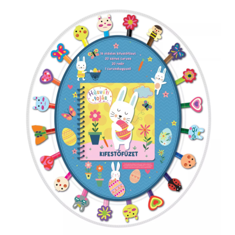 A Húsvéti tojás kifestőfüzet színes és kreatív időtöltést kínál a gyerekeknek húsvéti motívumokkal. A 16 oldalas füzetben nyuszik, csibék és tojások várnak színezésre, a mellékelt ceruzakészlet pedig mindent biztosít a rajzoláshoz: 20 ceruzát, 20 radírt é