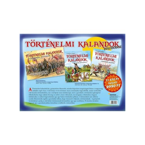 A díszdoboz tartalmazza a Történelmi kalandok a magyarság múltjában - sorozat két kötetét, illetve az ugyanezen sorozatban megjelent Nagy kirakóskönyvet.