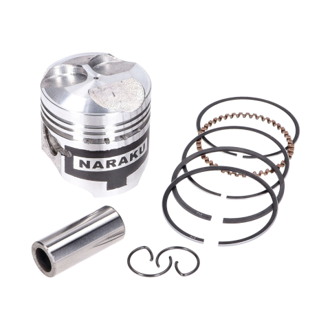 A Naraku teljes dugattyú készlete ideális választás a Piaggio 4 ütemű 3 szelepű hengerkészletekhez. A készlet tartalmazza a dugattyúgyűrűket, a dugattyúcsapszegét és a dugattyúgyűrű rögzítő karikáit az eredeti hengerekhez vagy a Naraku cserehengerekhez.A