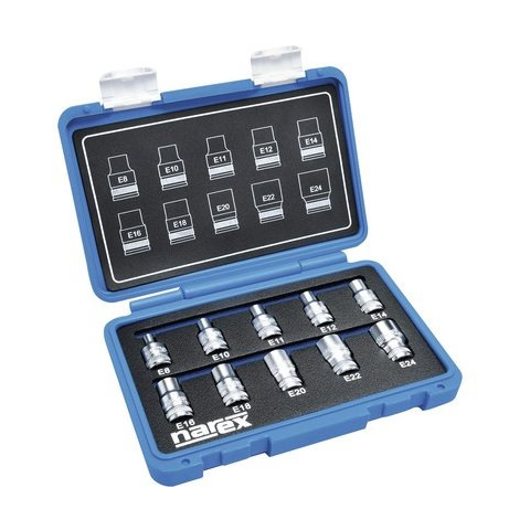 Dugókulcsfej készlet Sada nástrčných hlavic, 10 ks, chrom-vadanový ocel Narex's professional suite is equipped with 64 pieces of high quality attachments, bits and other accessories. Surprising not only for your quality and precise processing, but also for an affordab